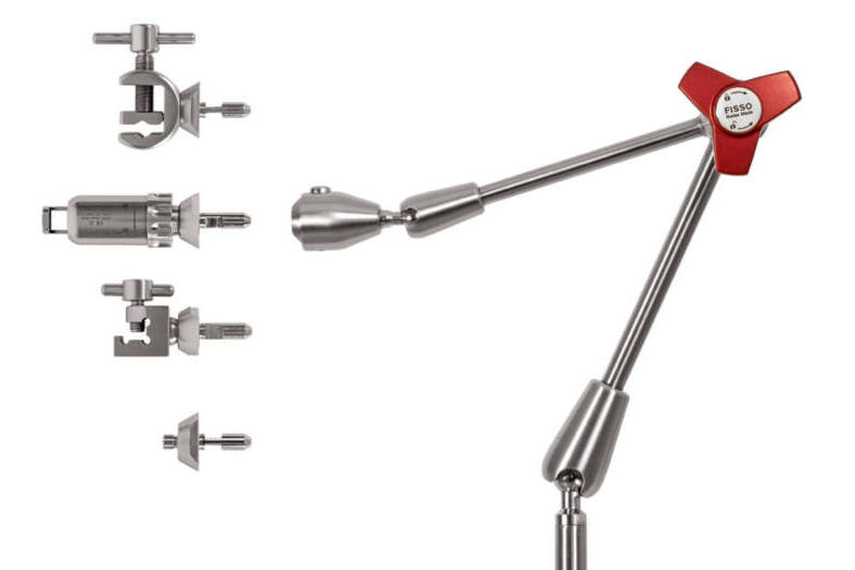 Die Fisso-Haltesysteme wurden in enger Zusammenarbeit mit Chirurgen entwickelt. Die rein mechanische Zentralspanneinheit ermöglicht eine einfache und schnelle Ausrichtung von Endoskopen und Instrumenten. Eine sichere Positionierung ist während der ganzen Operation gewährleistet. Innovatives Schnellwechselsystem ermöglicht den schnellen und sicheren Austausch von chirurgischen Kopfkomponenten. Die Produkte sind dampfsterilisierbar bis 134º Celsius.